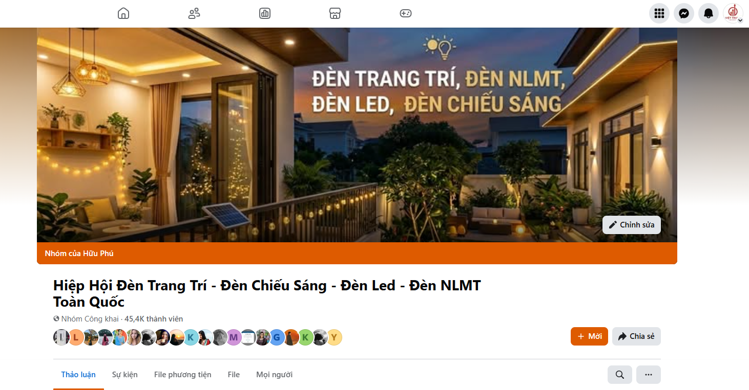 Cộng đồng Facebook ngành đèn trên toàn quốc 24 lượt xem 20/03/2026 Hoạt Động 20 Th3 Hiệp Hội Đèn Trang Trí – Đèn Chiếu Sáng – Đèn Led – Đèn NLMT Toàn Quốc Xem thêm: CÔNG TY TNHH THƯƠNG MẠI TRUNG SƠN GUANGQIN Công ty TNHH Thiết bị vệ sinh Trung Sơn NEPTUM Công ty TNHH Thiết bị điện Zhongshan GREEN MASTER Công ty TNHH Công nghệ WELLAND Quảng Đông Kết nối hợp tác-Cty Gia dụng FINCA Bài viết cùng chủ đề: CỘNG ĐỒNG ĐIỆN NĂNG LƯỢNG MẶT TRỜI (VIỆT GREEN SOLAR) Triển lãm nội ngoại thất VIFA EXPO Chuyên thăm đối tác đầu năm ở Cần Thơ Ghé thăm các cửa hàng đồ thờ xung quanh Hà Nội Ghé thăm kho Thiết Bị Nhà Bếp Boss Ghé thăm xưởng sản xuất bếp từ Fuger Ghé thăm nhà máy sản xuất Inox Thuận Phát Ghé Thăm showroom quạt đèn Fronshi